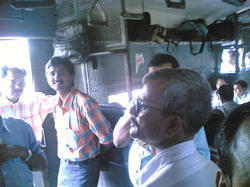 For those who don't live in West Bengal, introduction is a must.Of course, NewYorkers are no stranger to this revolutionary invention-they play even in the subs(Metro rail). Jeff Rubens(who is he?) wrote a very illuminating article on this. However,for the uninitiated innocents, Bridge in local train is a way of passing a not so memorable journey the Indian rail offers during officetime.It also helps forming a group to which wise commuters subscribe to become a kibitzer-thereby taking advantage of the many services the group offers.The group offers its members the following free services - Protects its members from the hordes of barbarians that ascend from Sodepur, Belghoria & DumDum